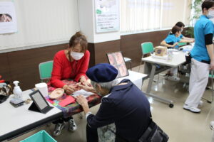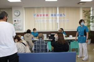 毎年恒例の「健康フェスタ2025」を10月11日の土曜日に開催しました。今年は天気にも恵まれ、150名以上の方にご来場いただきました。今年は新たにスタンプラリーを企画し、スタンプが完成した方(先着80組)に防災ボトルをプレゼントさせていただきました。